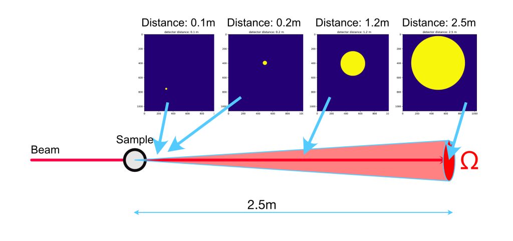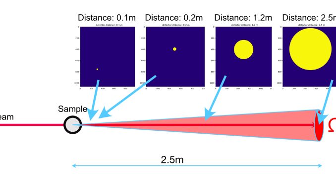 4. Practically, we may only be able to collect a limited segment of all scattered and diffracted photons (“method 3”), depending on how close we can get our detector and the shadowing of scattered and diffracted photons by sample holders.