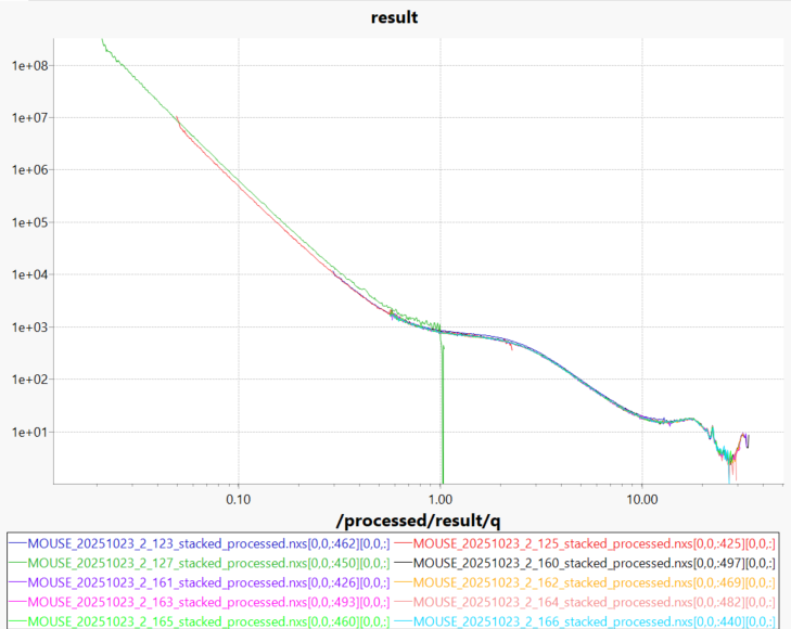 For homogeneous samples like glassy carbon, the scattering curves from the various instrument configurations also line up to a tee (Figure 2), highlighting that the absolute intensity calibration works well. We also took a measurement series with our molybdenum X-ray source, which also overlapped nicely with the copper curve, further underscoring our calibrations.