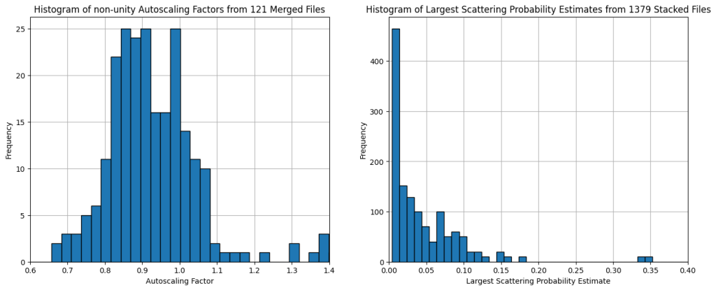 While we are doing some automated flagging (for fluctuating X-ray flux or unstable X-ray transmission factors), the flags discussed here for large autoscaling factors and large scattering probabilities have to be added as well. Subsequently, we have to think about report generation. As we are already assigning all our measurements to projects, it is not overly involved to program a reporting tool per project. These reports should show the datasets and a cursory initial analysis alongside other interesting information, but definitely have to put any raised flags first and foremost.